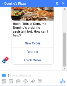 Place an order with Domino’s Pizza on Facebook Messenger. - And there’s always Messenger Codes—visual cues/codes that the user can scan to initiate bot conversation. (Messenger Codes are those dots and dashes around a user’s profile photo. They work for individual’s profile photos, too.)